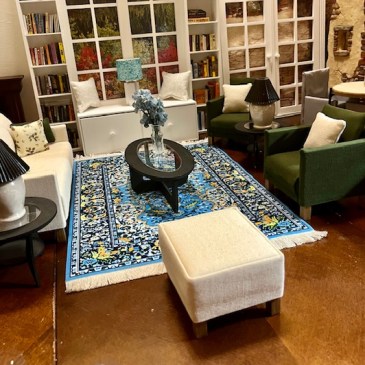 A very comfortable style, this room beckons for you to sit down and relax. Stretching out on the cream sofa or sitting in one of the hunter green chairs, it makes no difference because all are seat-worthy.