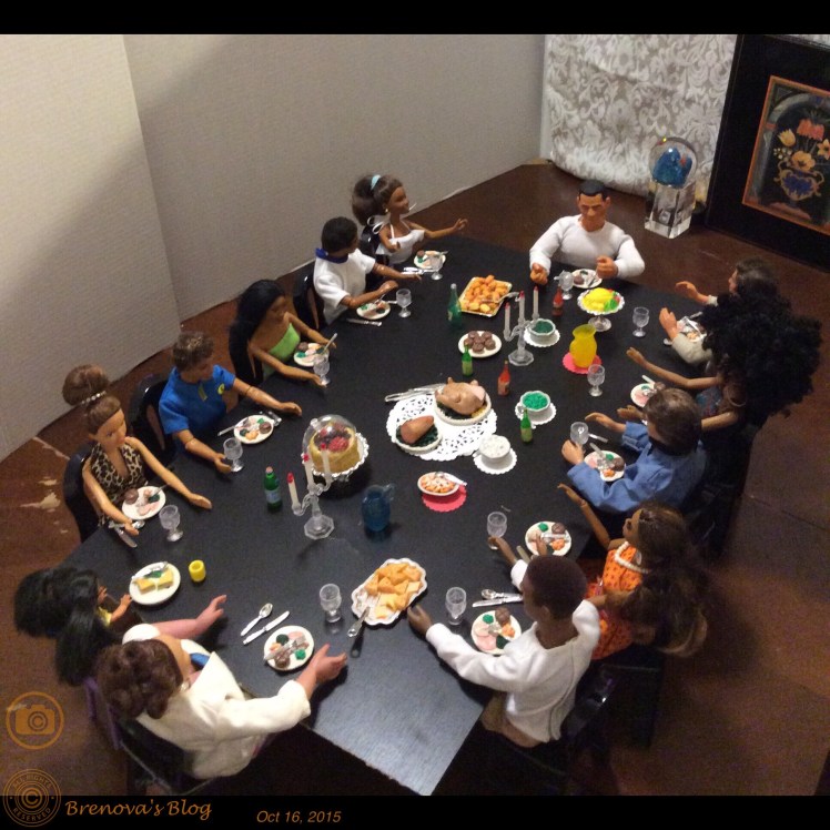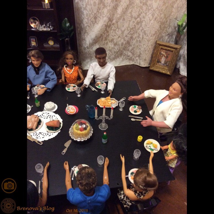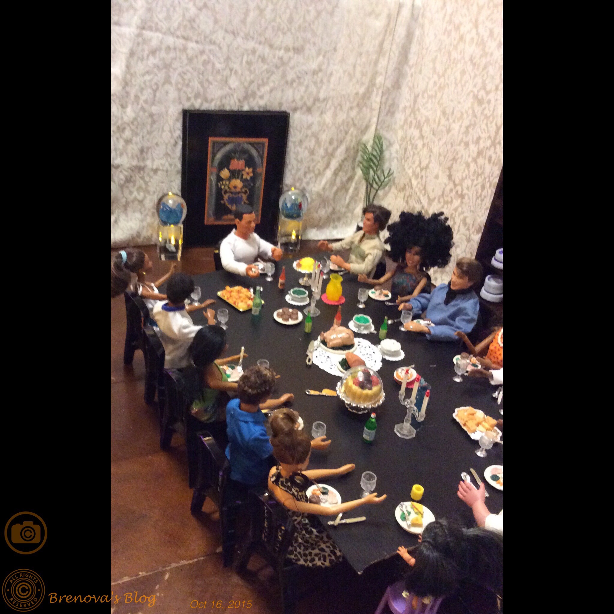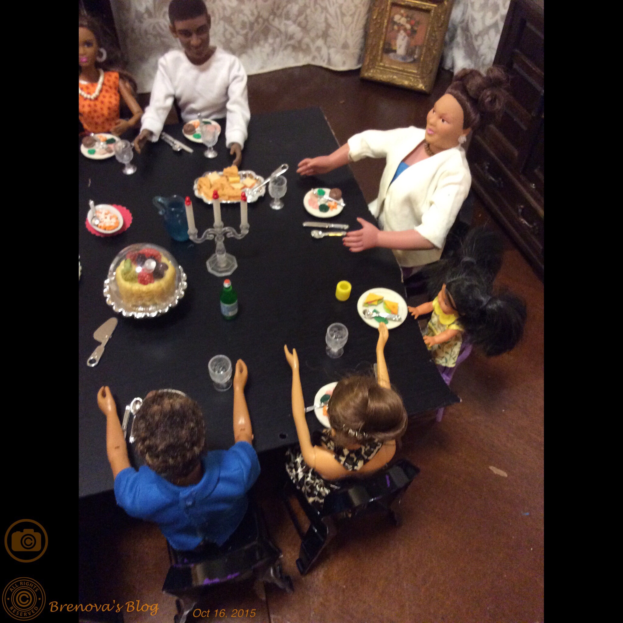 The entire family joins in to celebrate their Thanksgiving dinner. Also in attendance is Benabe Otunde, the younger brother of Miguel’s wife, Ayeleo.