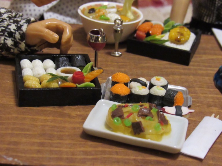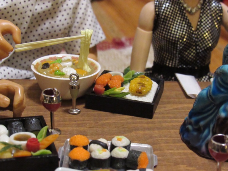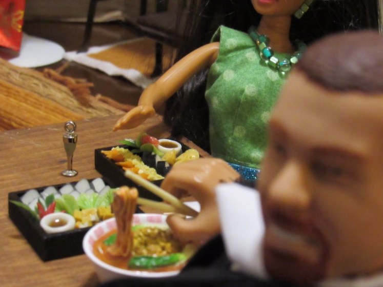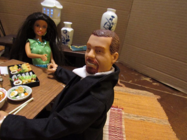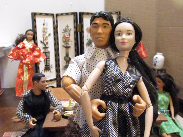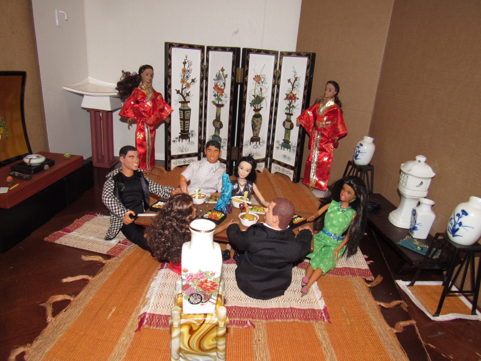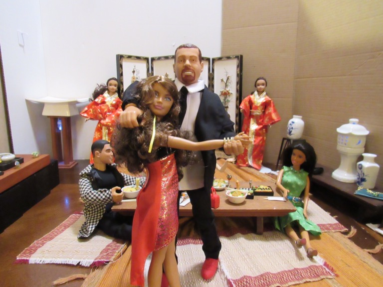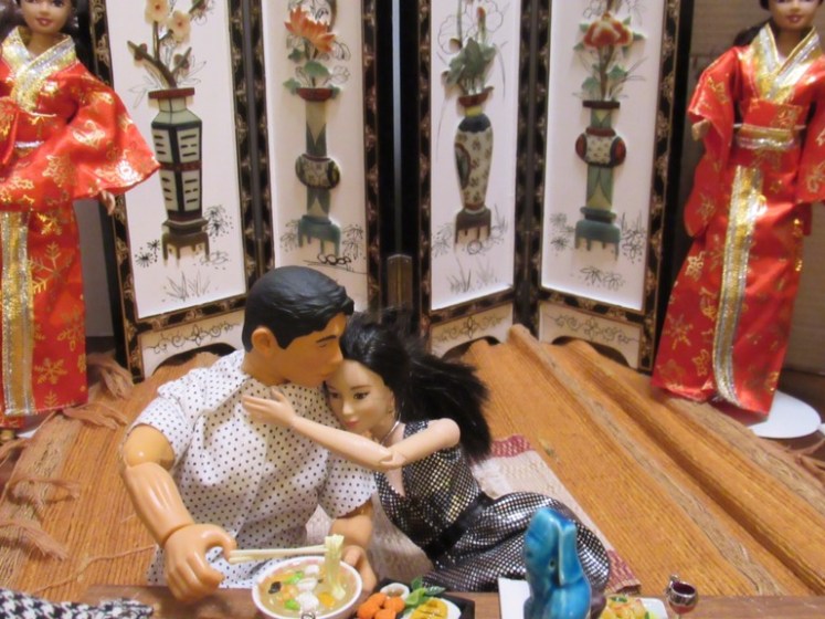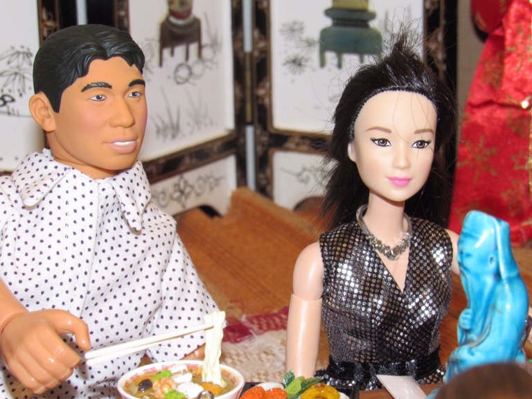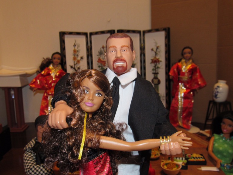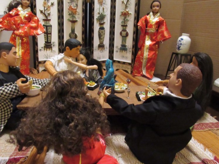 Thanks Vanessa! This one took me some time to put together; it all started with the Asian bowl and ladle under the artwork and Hideo Nomo. He and my Barbie just fell in love. And yes her face is lovely. Blessings!