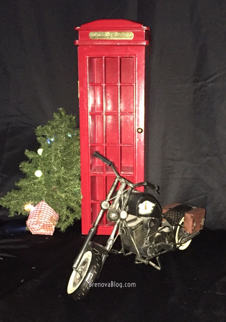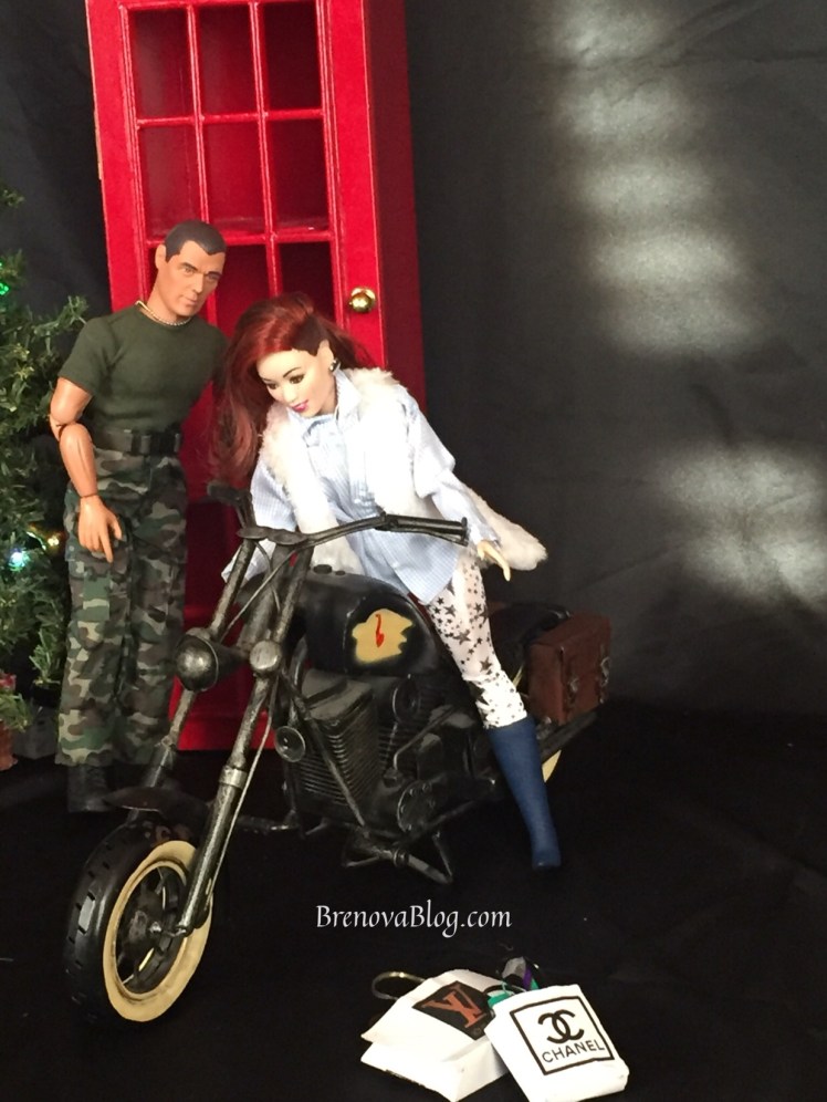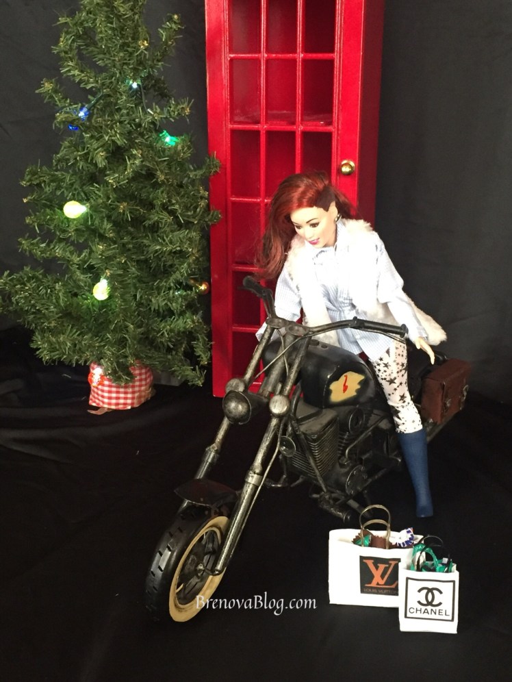 Today, Lea is finishing up her Christmas shopping and picking up a few things for her holiday menu. Before leaving the mall, Lea decided to, finally, get her ears pierced and stops by to check out the vintage motorcycle which was on display. She loves motorcycles and has every intention of owning one, someday. Today, she’ll just pretend.