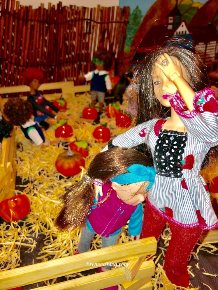 (Maggie) *notices the anger and extreme disappointment of her oldest daughter and tries to comfort her* Come on Eiko. Give mommy a hug. I know you’re really upset but I want you to be a big girl. Ok? Daddy chose the one he thought was best for the family. I’ll tell you what. You go around the other side and pick out the apples for the apple pie and you can eat one too. How’s that? *feelings all in check, Eiko bolts out of the patch to pick out her apples. Maggie wipes her brow, while Nobuo scratches his head in confusion *