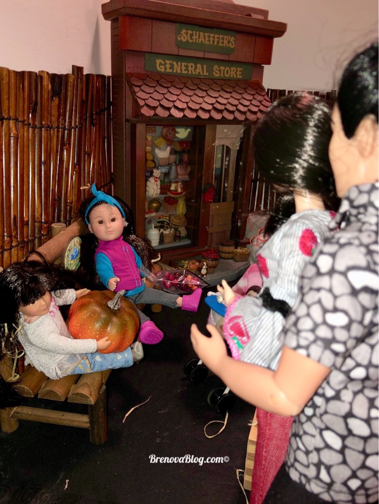 Say hello again to the Ishikawa family. Magnolia and Nobuo (faithful man) Ishikawa, daughters Eiko (“long-lived child” or “splendid child”) & Akemi (beautiful dawn ) and infant son Akio (“glorious hero”) Yesterday, the family went to the pumpkin patch at the General Store. It was “Siblings in the Patch Day” – the day set aside for older siblings or parents with two or more children to have a fun day together.