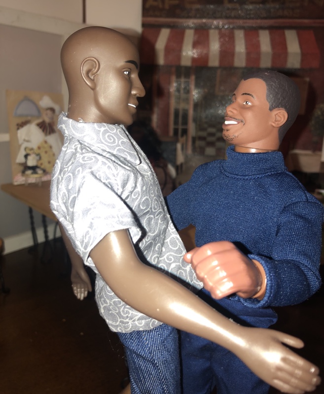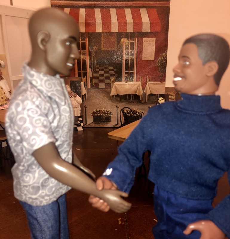 Griffin and Larue with Lavar and Isha: Photos at the rear wall of Roley Poli’s Restaurant