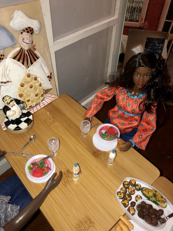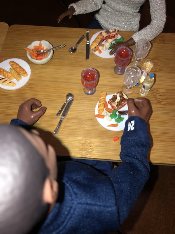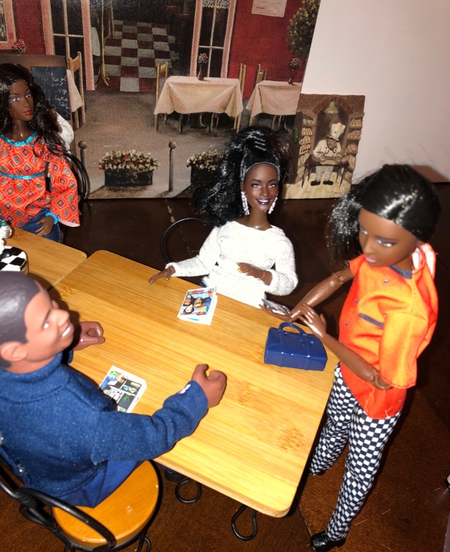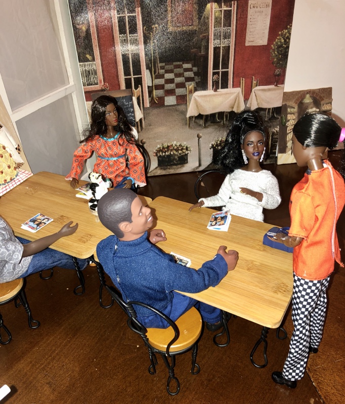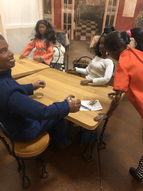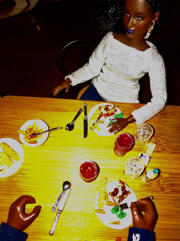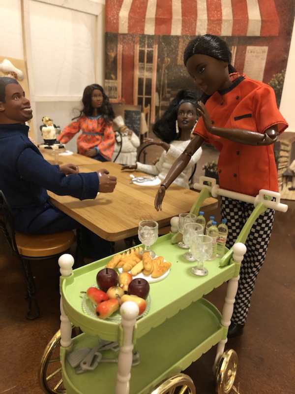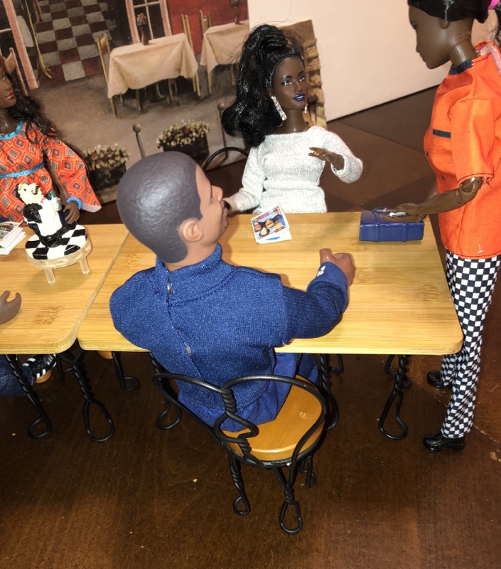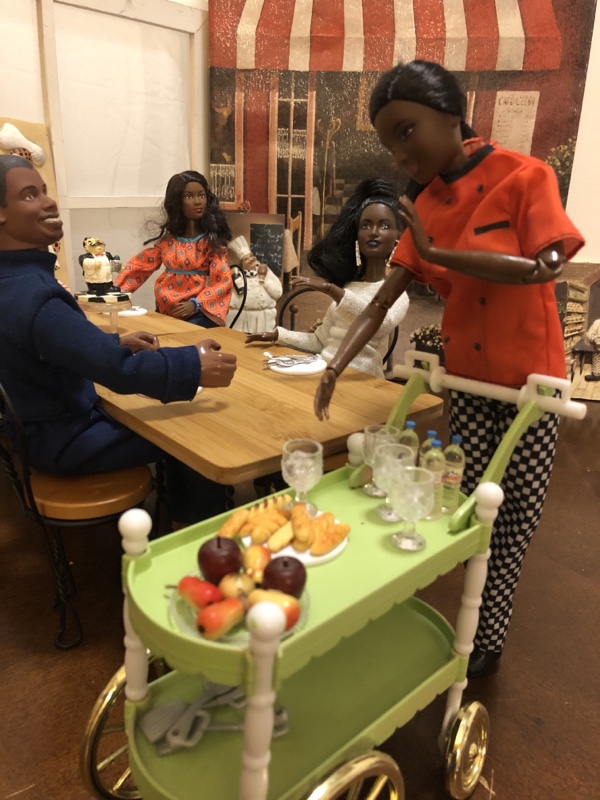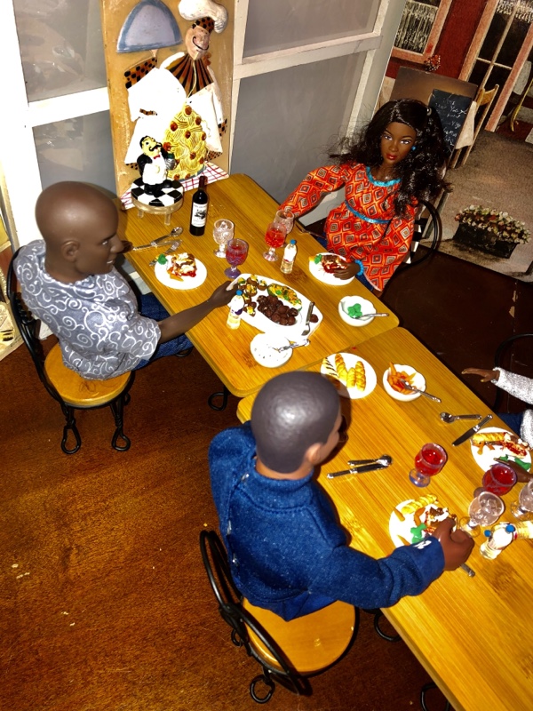 Now that everyone has been introduced and the tables have been prepared, the couples are seated. After a little while, their server Mbali Nala Perrson, introduces herself and gives suggestions while she answers their questions. The table orders the house specialty; the server collects the menus and leaves the table.